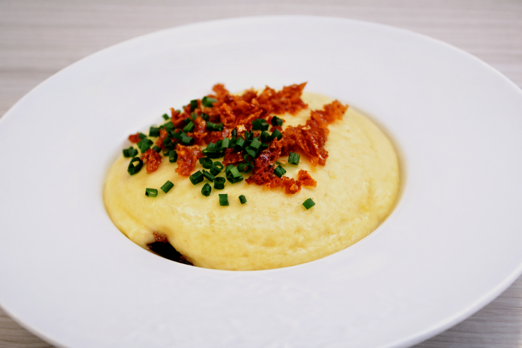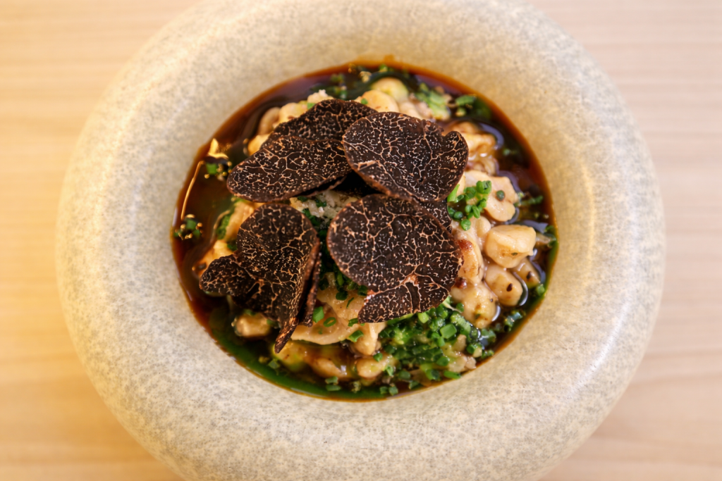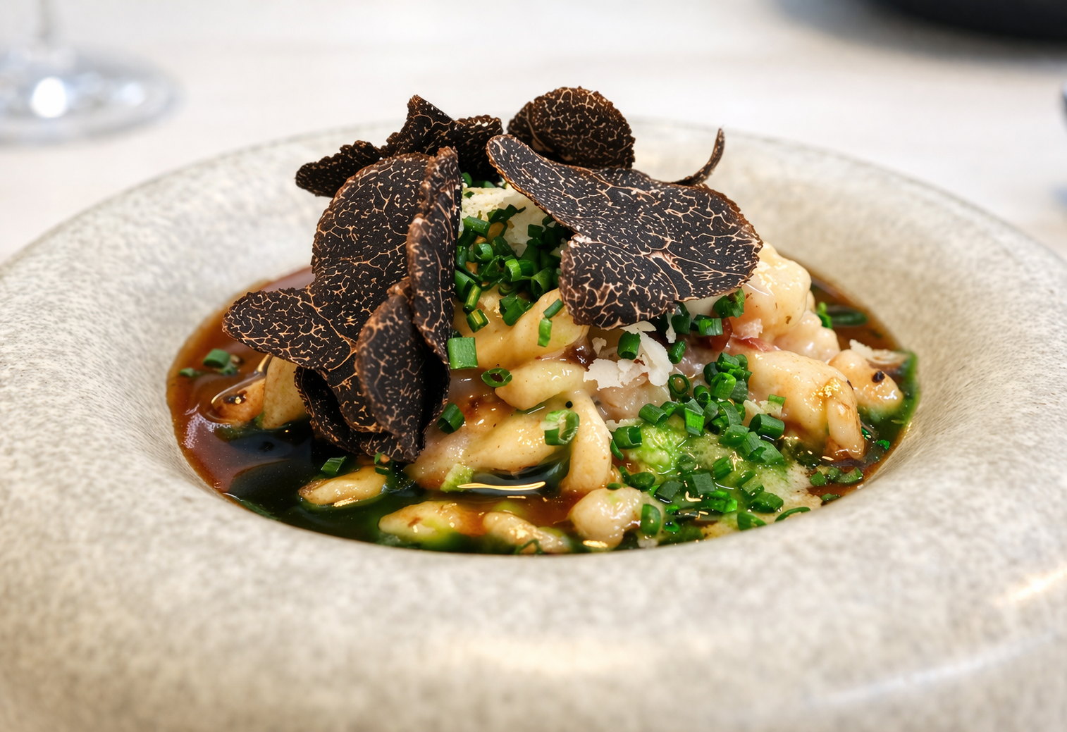 Die Belper Knolle, die Michael Hergenröder sehr schätzt, bringt Würze und eine feine Körnigkeit. Der qualitativ überzeugende Wintertrüffel ist präsent, bleibt aber bereichernd eingebunden und dominiert nicht – weder in der Nase noch auf dem Gaumen.