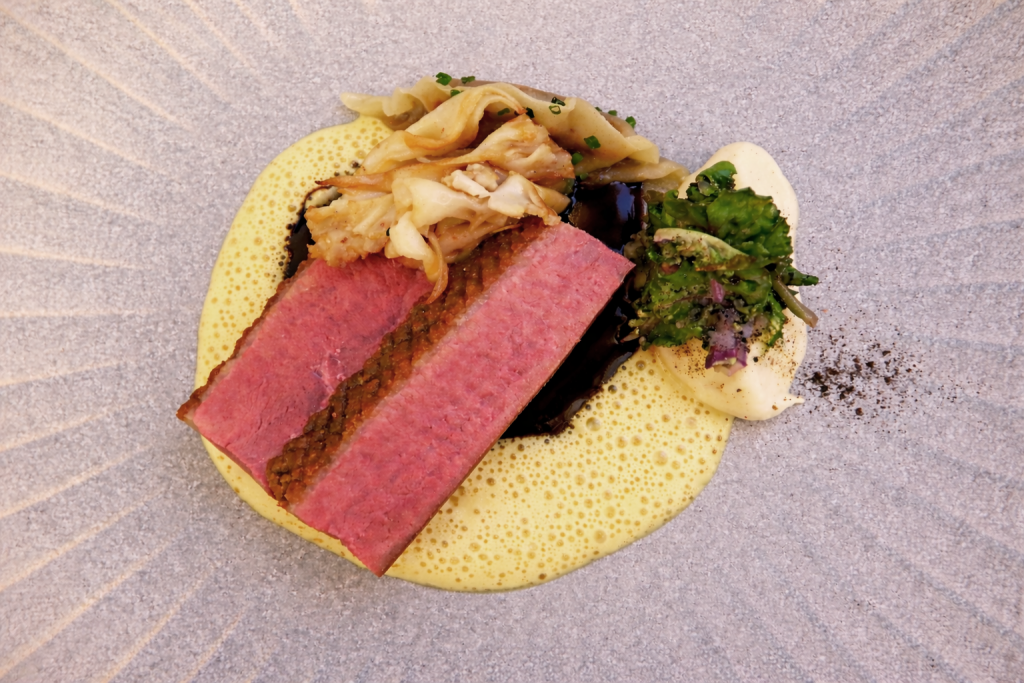 Sehr überzeugend in der Aufteilung und im Gedanken dahinter. Die Entenbrust ist präzise gegart, mit saftigem Kern und sauber ausgearbeiteter Haut, die leicht knusprig ansetzt, ohne trocken zu wirken.