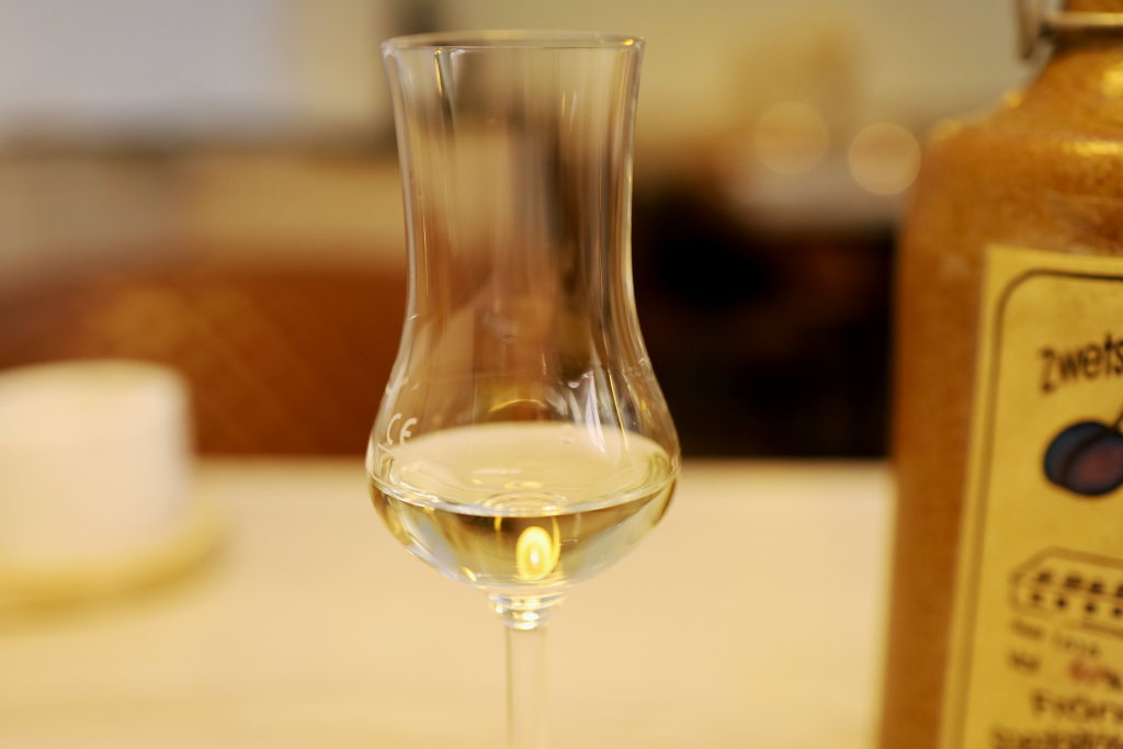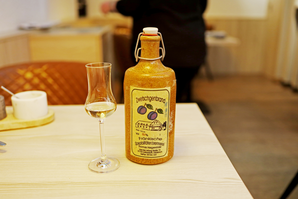 Zum Abschluss dann – so viel Sünde durfte dann doch sein – ein Zwetschgenbrand aus der hauseigenen Brennerei. Klar, sauber, mit präziser Frucht und schöner Länge.