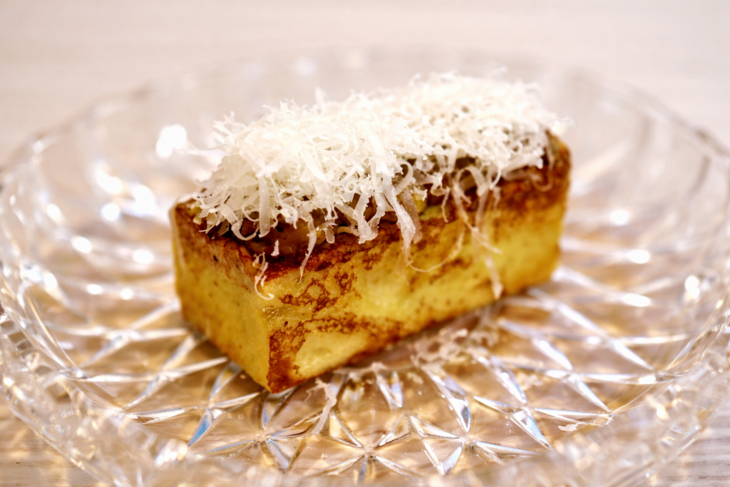 Das Brioche mit Pilz-Duxelles bringt gehaltvolle Fülle, wirkt aber nicht schwer, sondern rund, angenehm, und voller Umami.