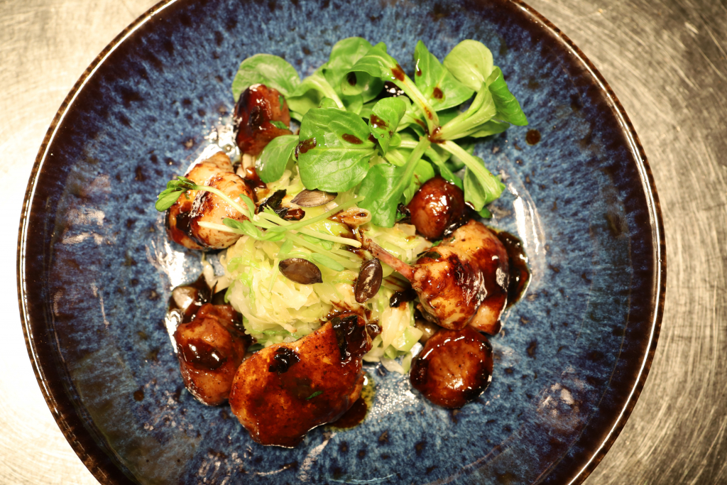 Der Teller wirkt zunächst reduziert, fast zurückgenommen, aber darin liegt seine Präzision. Die Wachtel sauber gegart, saftig, mit einer schönen, leicht karamellisierten Oberfläche. Im Zentrum steht jedoch der Jus – tief, konzentriert, mit genau der richtigen Balance aus Kraft und Eleganz.