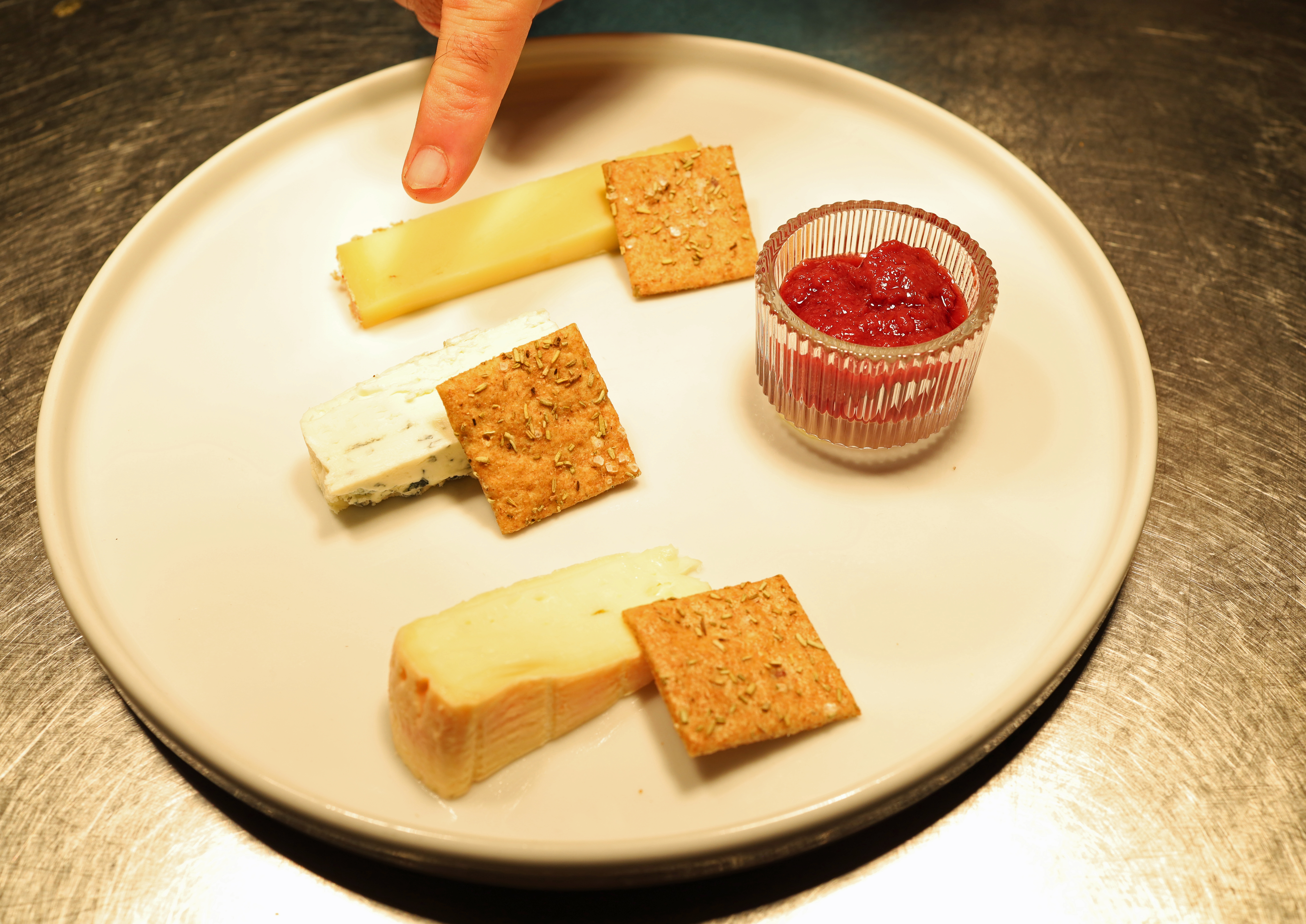 Der Käseteller bleibt bewusst zurückgenommen und orientiert sich an der klassischen Idee: drei unterschiedliche Käse, sauber gewählt und sinnvoll aufeinander abgestimmt.