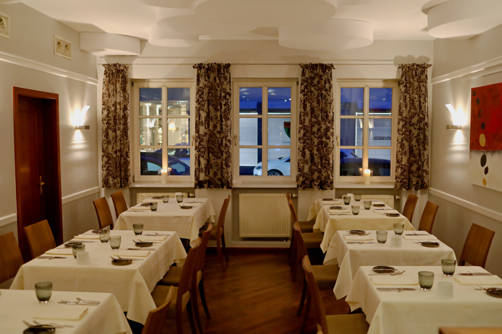 Drinnen empfangen einen gedämpftes Licht, Ruhe und eine zurückhaltende, stilvolle Eleganz in der Gestaltung des Raums. Restaurantleiter Edgar Bartl begrüßt mich aufmerksam und freundlich, ohne Förmlichkeit, ohne einstudierte Gesten.