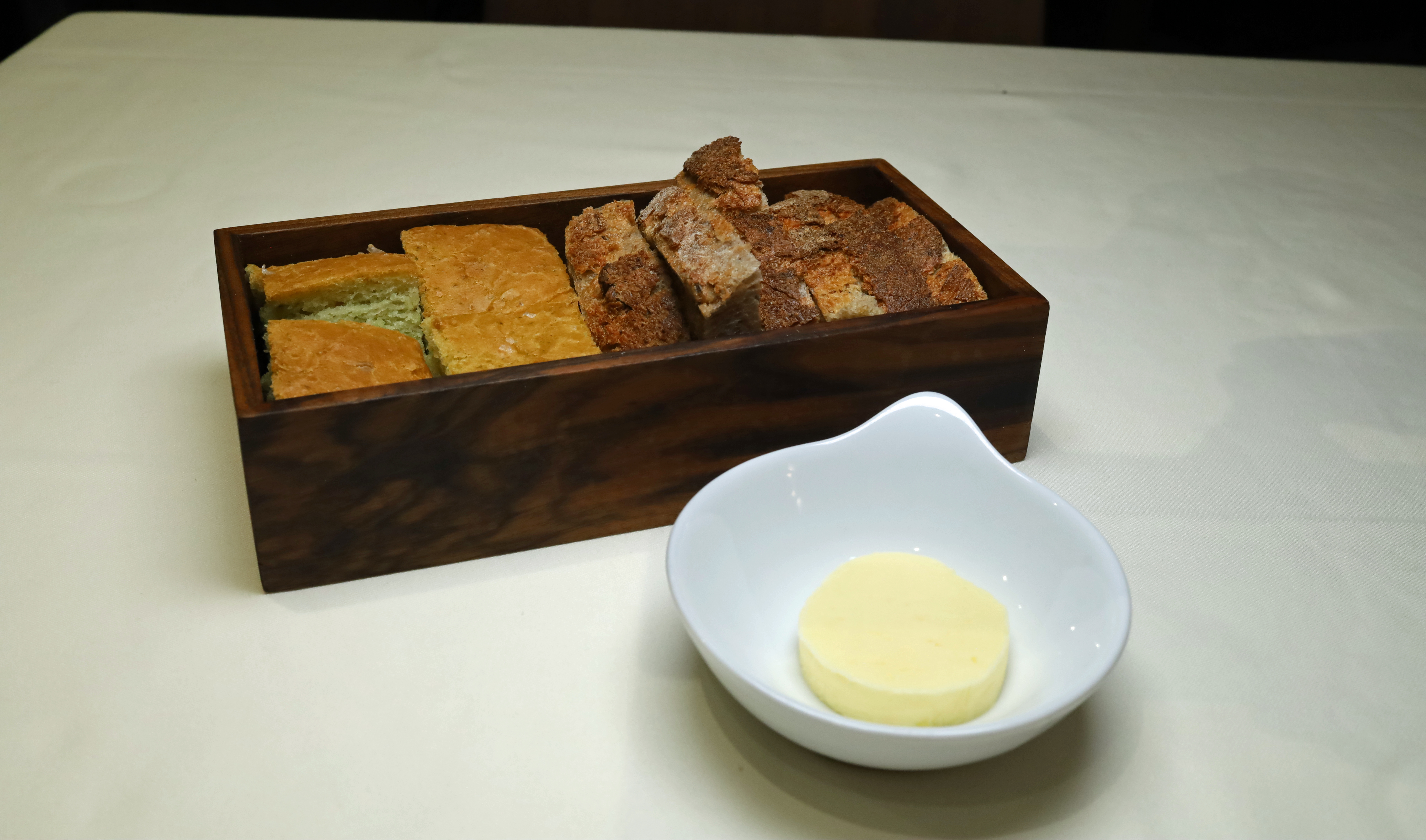 Die Texturen stimmen, die Krusten sind aromatisch, die Krume saftig. Dazu aufgeschlagene Salzbutter, luftig und sauber abgeschmeckt. Kein Auftritt, kein Ritual – einfach ein ruhiges Ankommen.